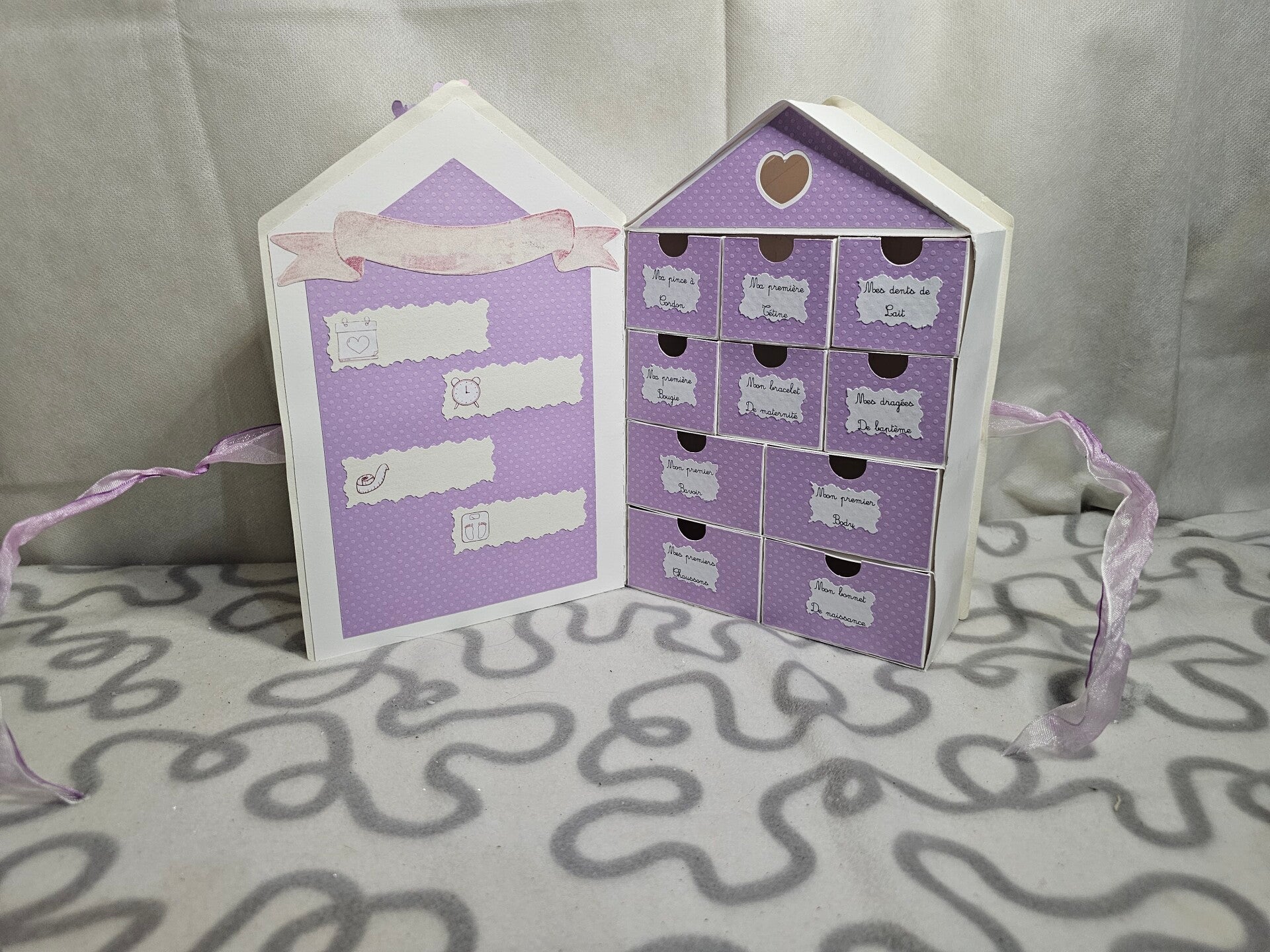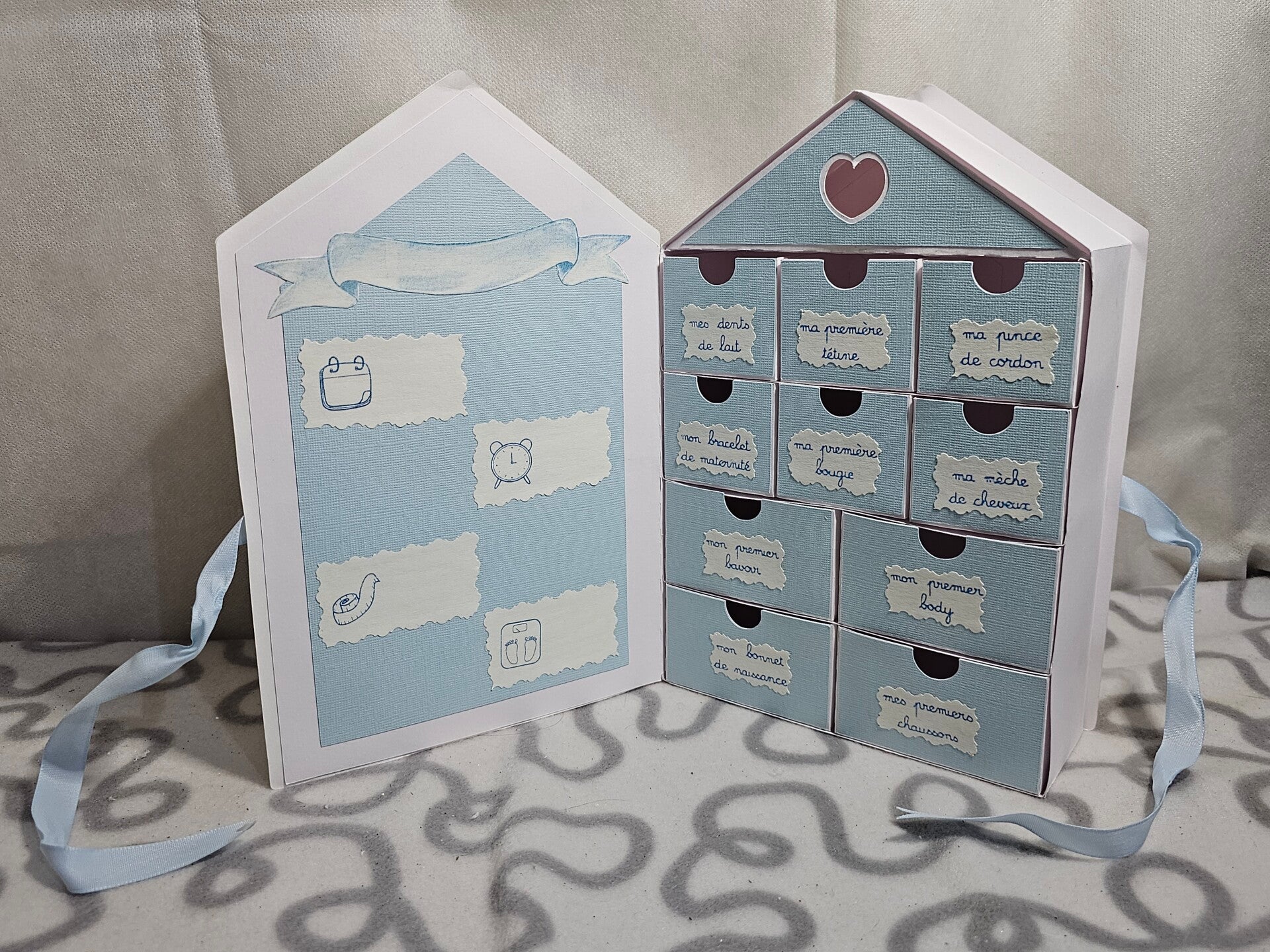 **Des souvenirs spéciaux** : la première mèche de cheveux, le bracelet de naissance, ou encore les dessins de votre petit artiste en herbe.